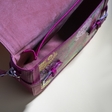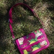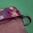 Ми виконали її з натуральної телячої шкіри та прикрасили яскравим квітковим принтом. Всередині — жорсткий корпус, велике основне відділення та додаткове накладне.